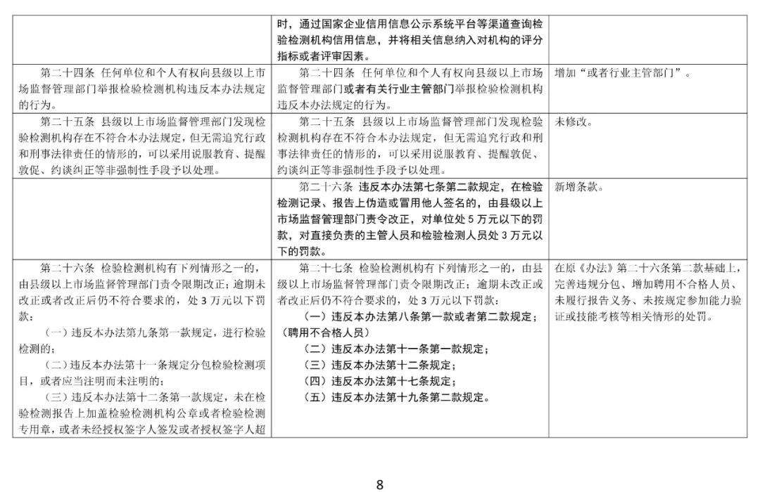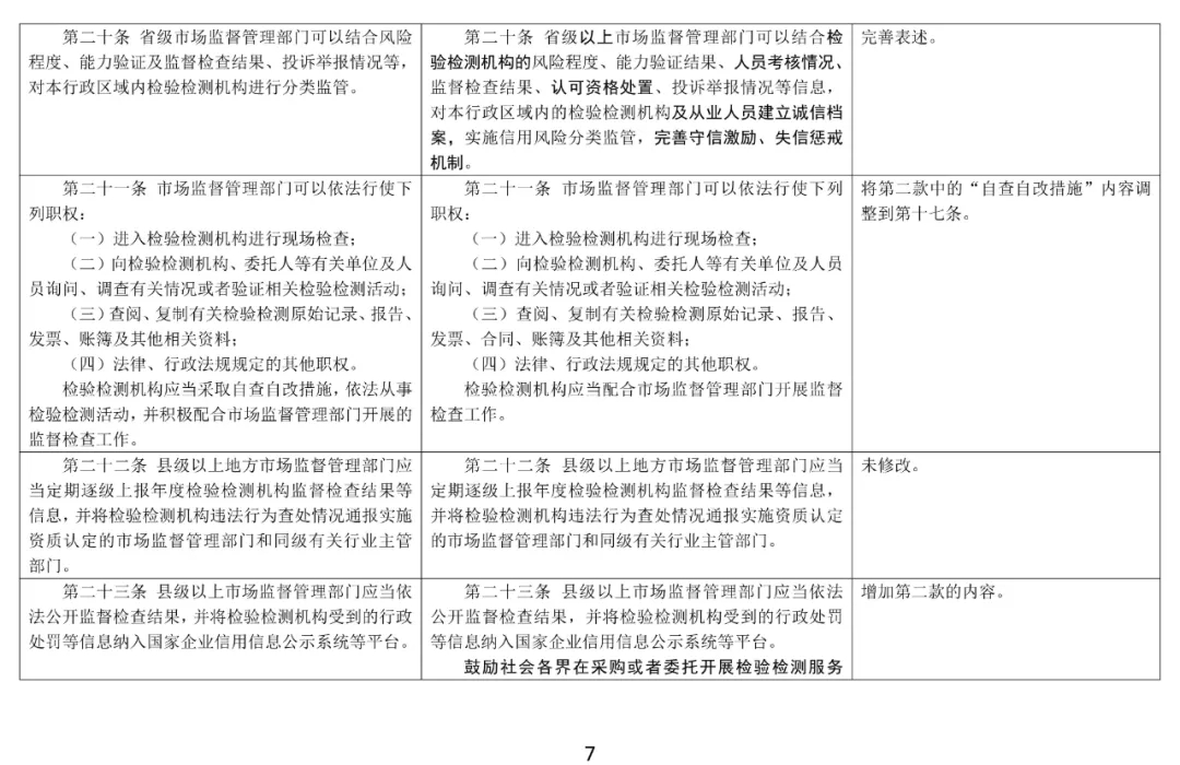 为深入贯彻落实党中央、国务院决策部署,进一步强化检验检测行业管理,规范检验检测市场秩序,促进行业持续健康发展,市场监管总局启动《检验检测机构监督管理办法》修订工作,组织起草了《检验检测机构监督管理办法(征求意见稿)》。《检验检测机构监督管理办法(征求意见稿)》新旧条文对照表如下,供行业同仁参考。