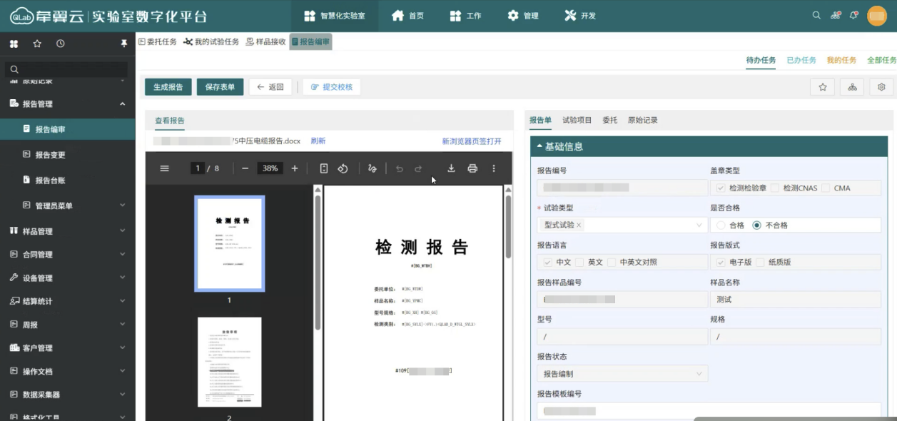 实验室检测报告自动化:实现检测数据自动采集、计算、审核与报告输出;
