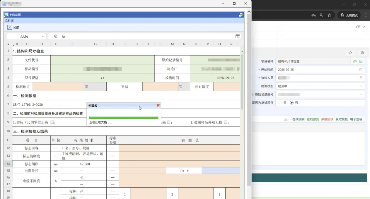 ▷原始记录模板制作:在Excel/WPS表格中按用户模板设置标签,定义数据回填区域与逻辑。