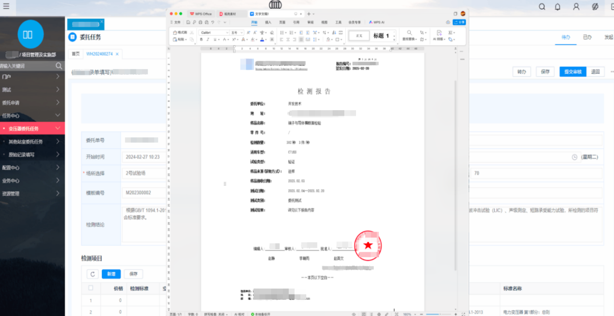 将配置好的Excel/WPS表格原始记录模板与Word/WPS文档报告模板上传至系统,形成模板库与业务关联。