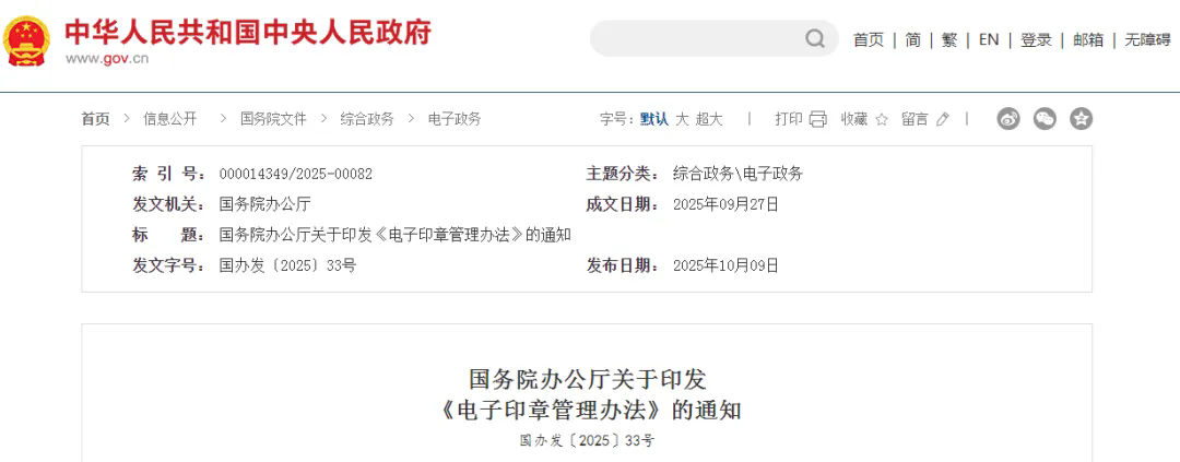 国务院办公厅关于印发《电子印章管理办法》的通知
