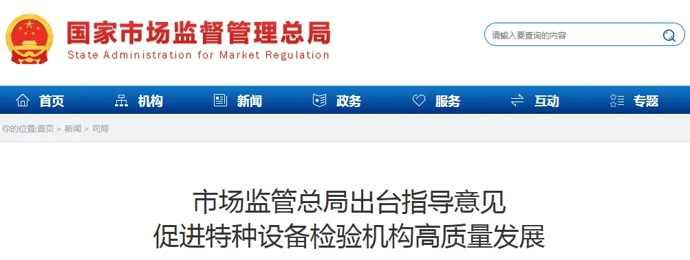 日前,市场监管总局出台《关于促进特种设备检验机构高质量发展的指导意见》(以下简称《意见》),进一步完善特种设备安全治理体系,推动特检机构专业化、规范化建设,为特种设备安全平稳运行筑牢技术支撑防线。